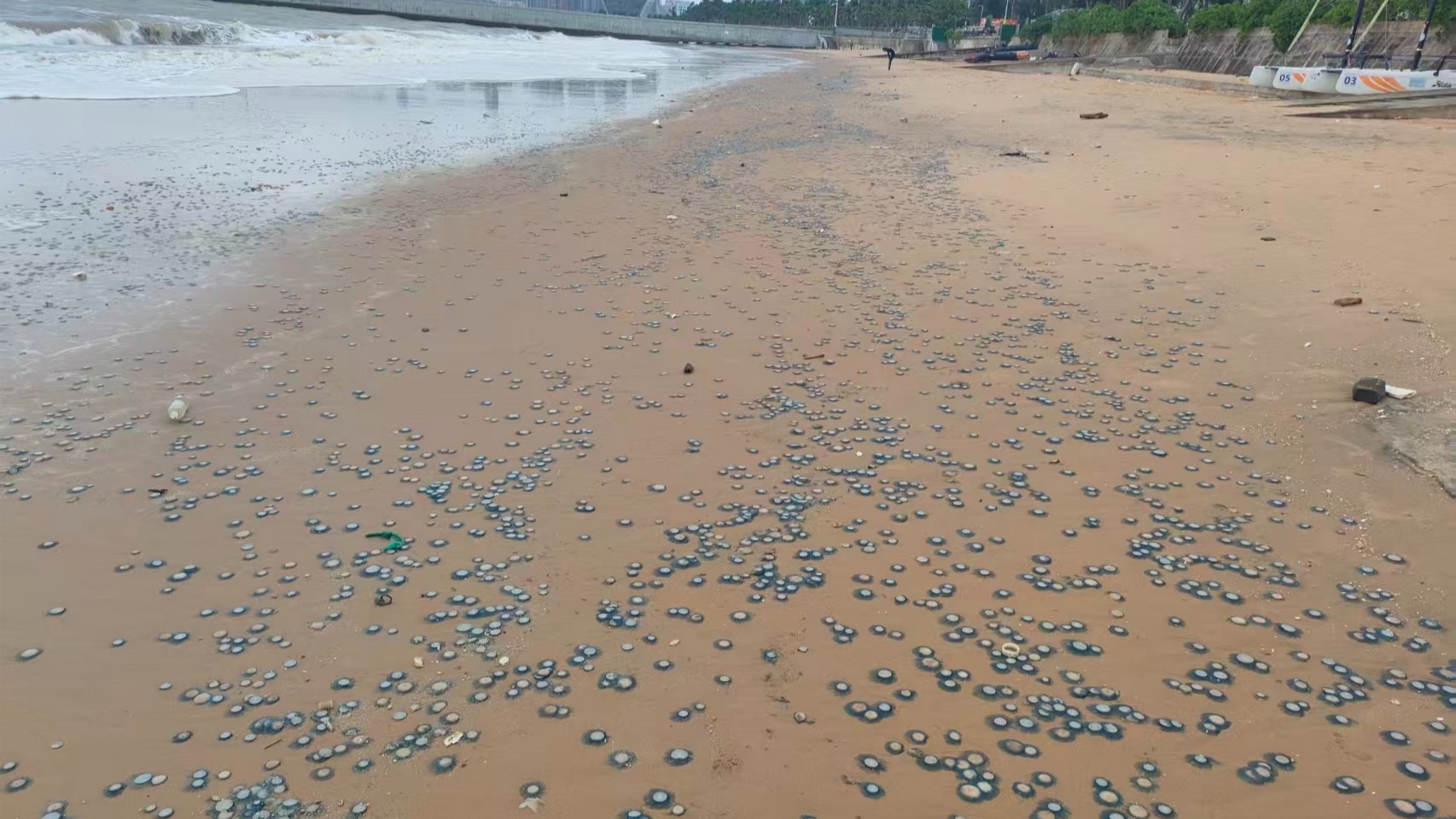 海口西海岸出現(xiàn)大量銀幣水母 專家:有毒,應(yīng)避免主動(dòng)觸碰!